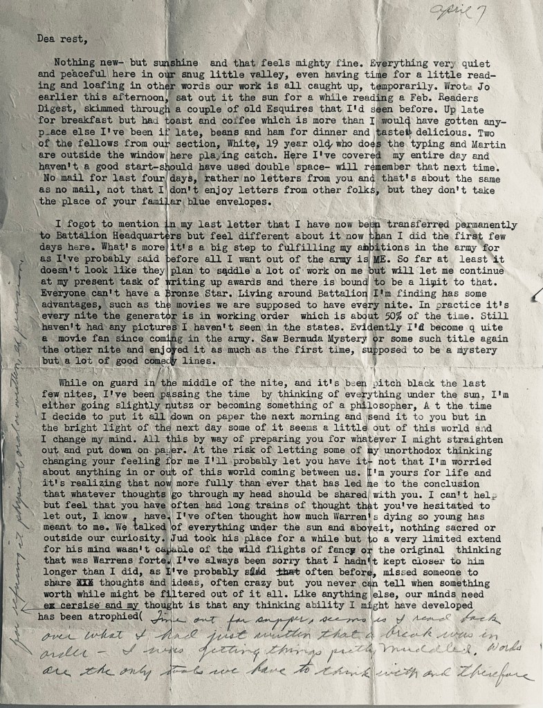 The folllowing poems were re-assembled from letters sent home by Carol Milton Merchant, grandfather of Megan Merchant, who fought in WWII from March 31, 1944 to November 3, 1945.