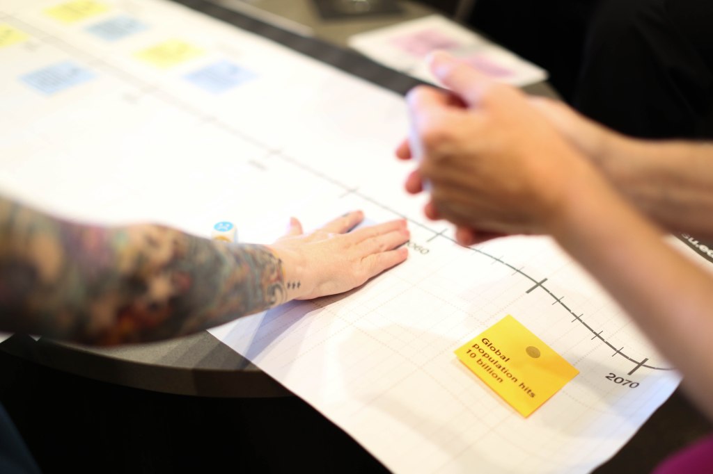 Each cohort consists of around 8–10 people, including both student veterans at ASU and other veterans from the community. Some participants are fresh out of the service, while others have been in the civilian world for years. Regardless of their background, they all work together through our process of futures thinking and narrative development.